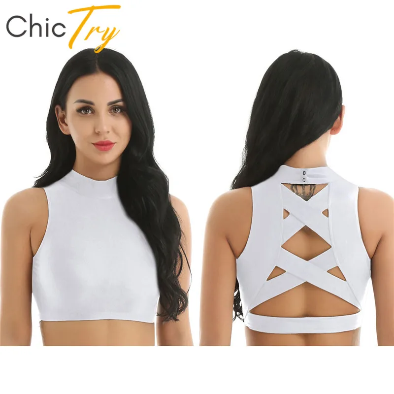 ChicTry однотонная танцевальная одежда без рукавов с ремешками на спине для взрослых женщин повседневный короткий топ для взрослых спортивная гимнастика балетные танцевальные костюмы