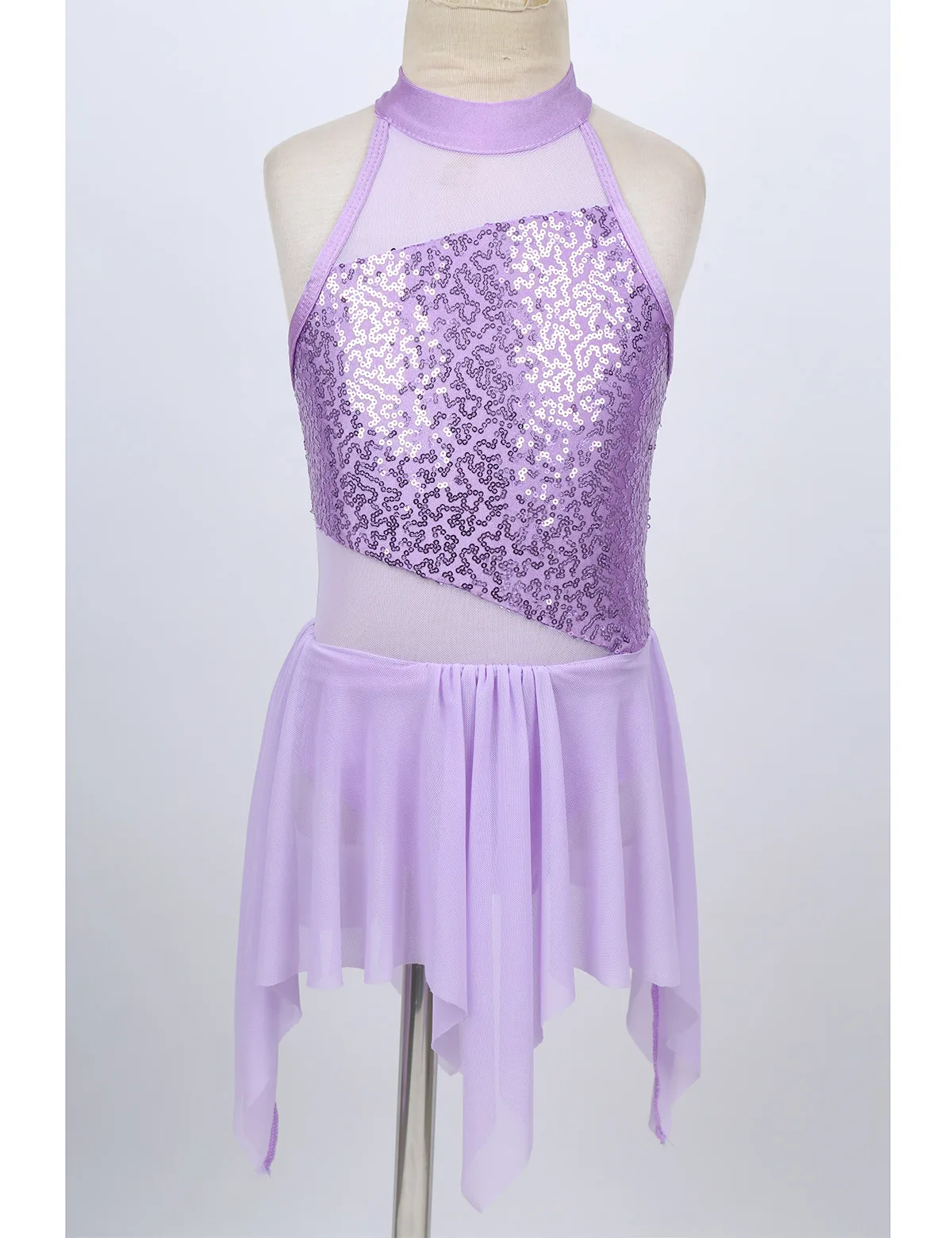Платье-балерина с блестками для девочек, детское платье без рукавов, с вырезом на спине, современное Lyrical танцевальное бальное платье