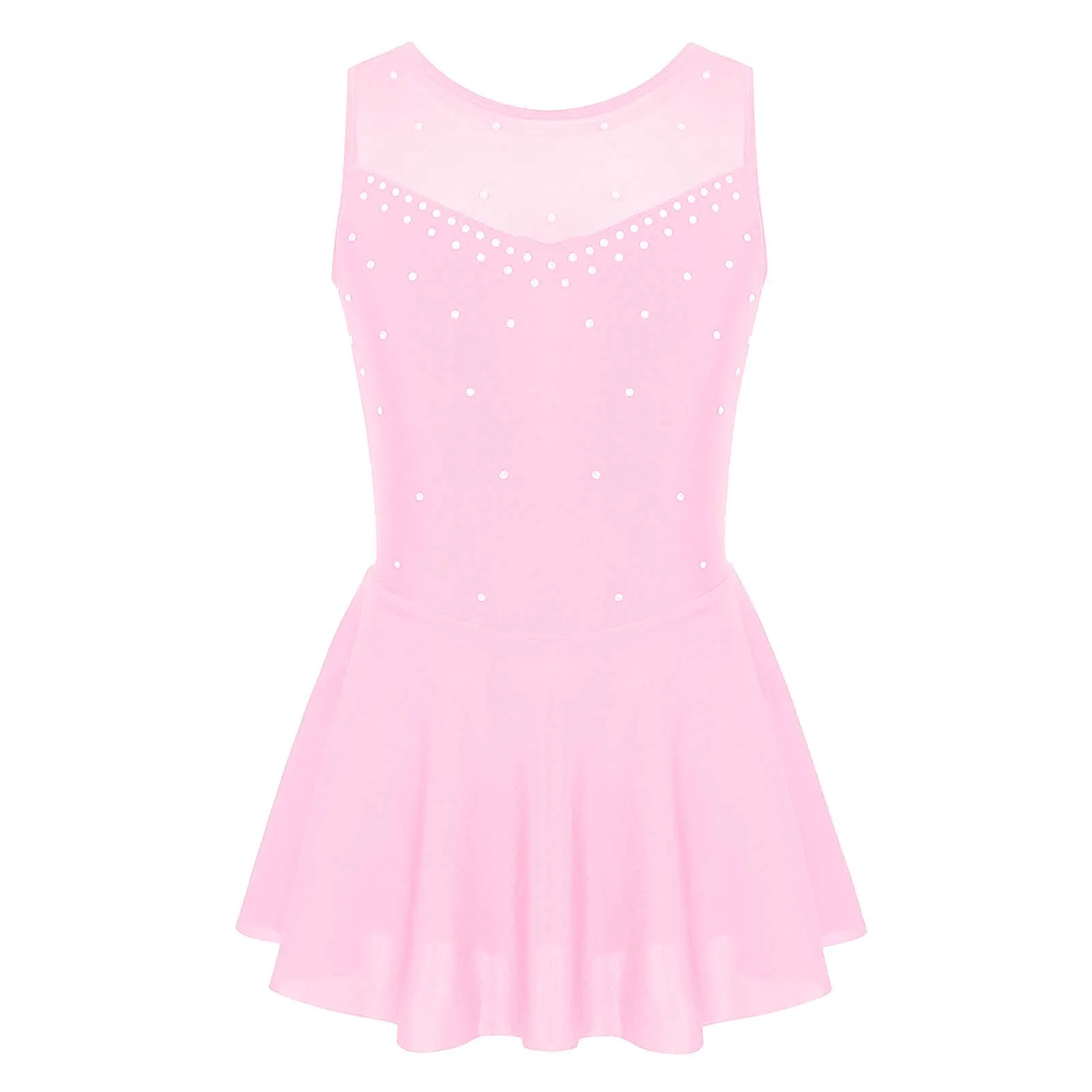 Особенности:Изготовлен из высококачественного материала, легкий светильник, мягкий, дышащий и удобный для ношения, очень гладкая поверхность на ощупь.Платье с круглым воротником и без рукавов; Одежда в стиле пэчворк; Контрастный цвет; Блестящие Блестки с цветочным узором спереди.Открытая спина, эластичная сетка из спандекса в стиле пэчворк, двухслойный шифон разных цветов снаружи, трусы внутри, очень модные.Таблица размеров означает возраст для девочек, но они предназначены только для общего руководства, рекомендуется ручная стирка в холодной воде и сушить в подвешенном состоянии.Подходит для любого случая, повседневной жизни, танцевальной одежды, вечерние шоу, выступления на сцене, фотосессии, гимнастики, игр и т. д.