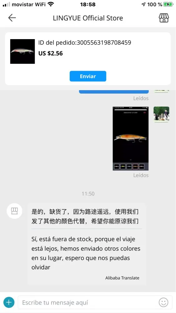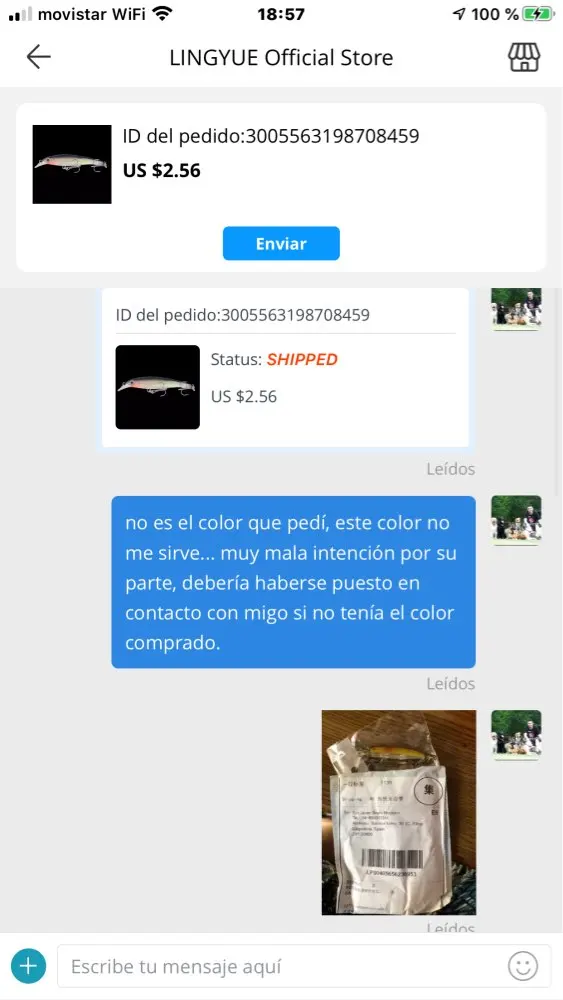 Воблер не получил , продавец вернул деньги
