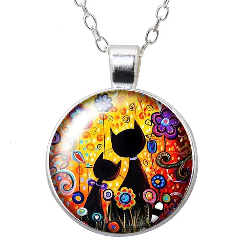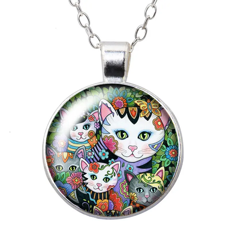 Красота картина цветы кошки фото серебряный цветбронза кулон ожерелье 25 мм стекло кабошон женщина девушки ювелирные изделия подарок на день рождения
