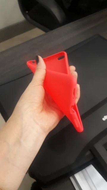 Отличный чехол! Красный цвет великолепен, отпечатки пальцев не видны, тактильные качества выше всяких похвал - просто не хочется выпускать из рук. Вокруг камеры небольшой бортик, с лицевой стороны чехол на один миллиметр поднимается над экраном, кнопки нажимаются очень легко. Рекомендую!