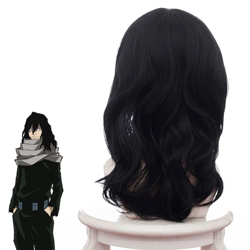 My Hero Academia Shouta Aizawa, ластик для головы, косплей, парик, черные длинные волнистые волосы для косплея, волнистый парик для косплея, парик боку нет героя Академии