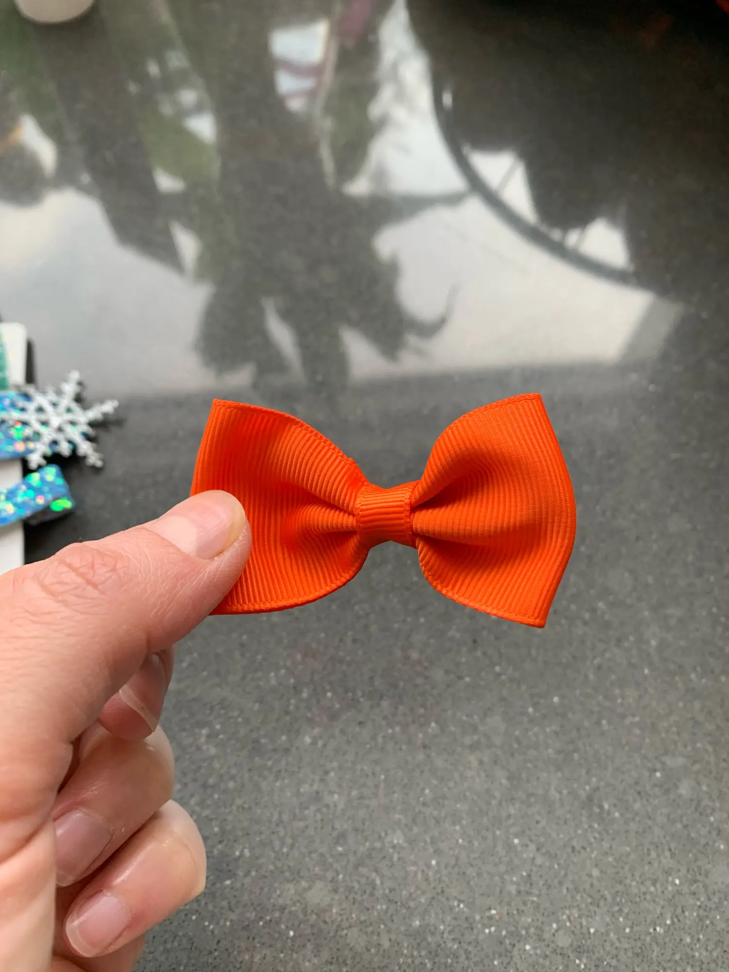 Хорошие детские бантики, прикреплены к заколке аккуратно, нитки не торчат, цвет яркий. Рекомендую.