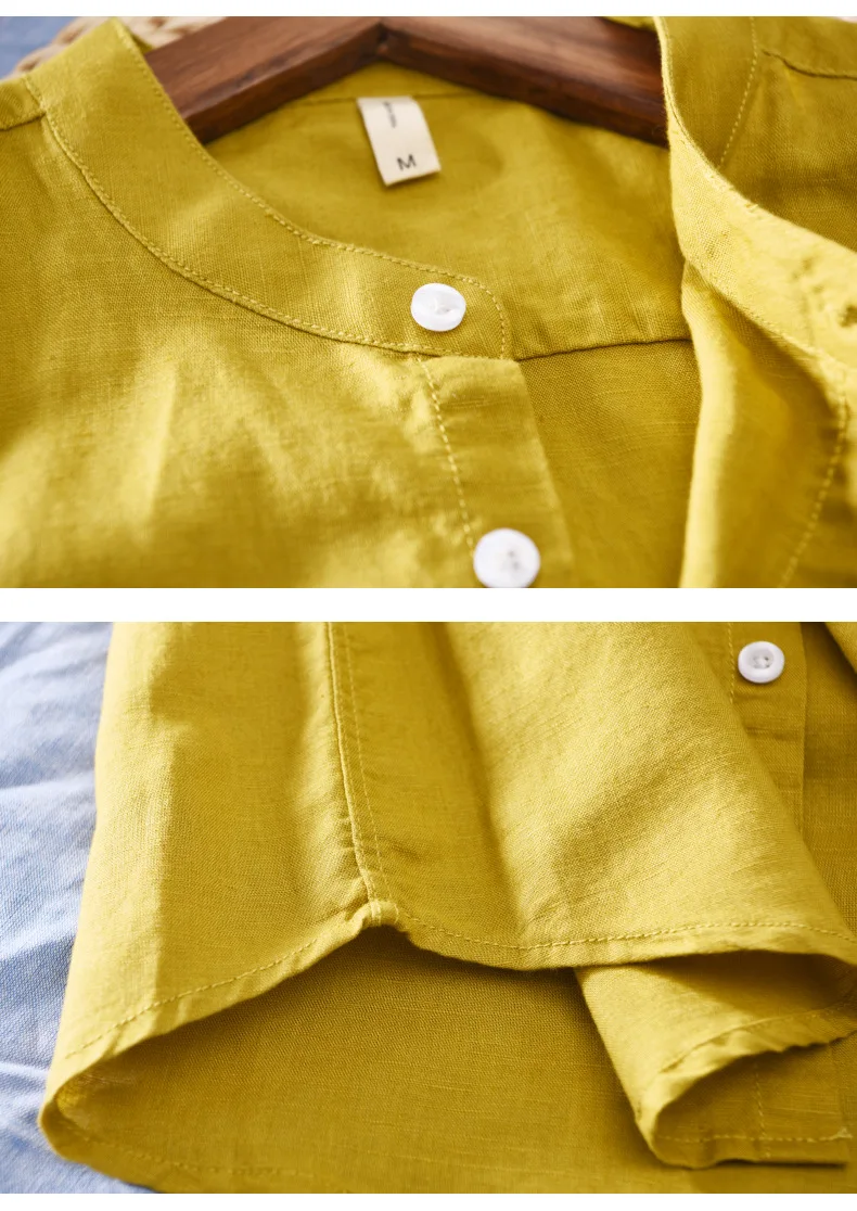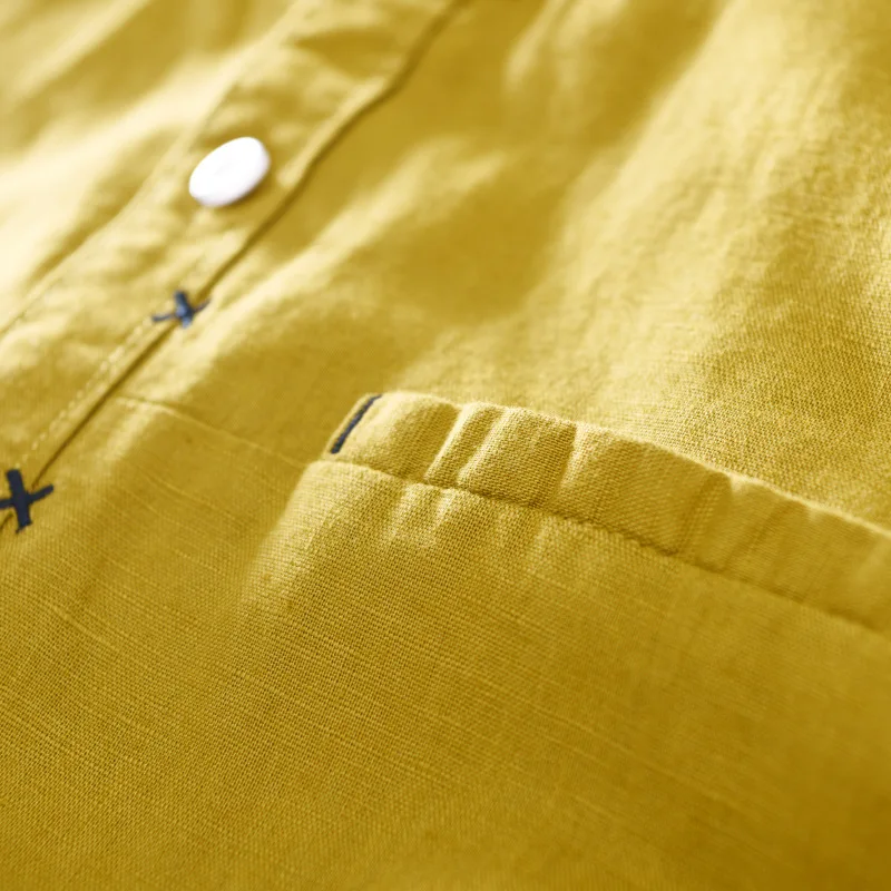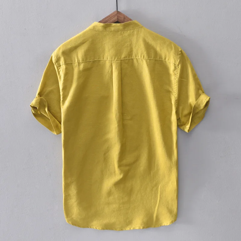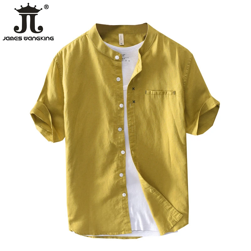 Новинка 2019 мужская хлопковая рубашка с коротким рукавом и воротником-стойкой, размер M-XXXL