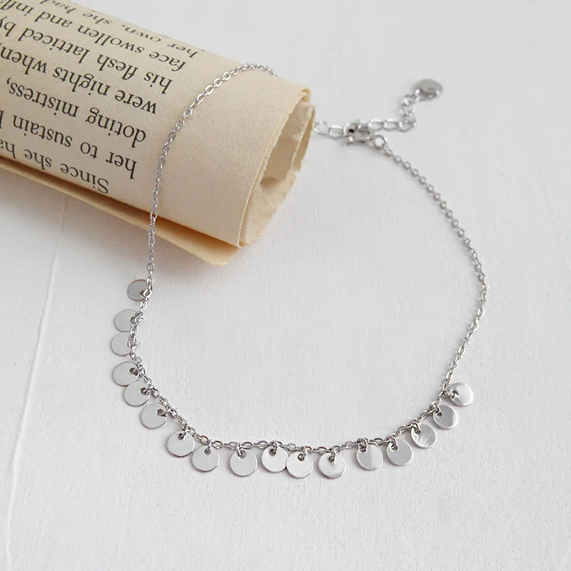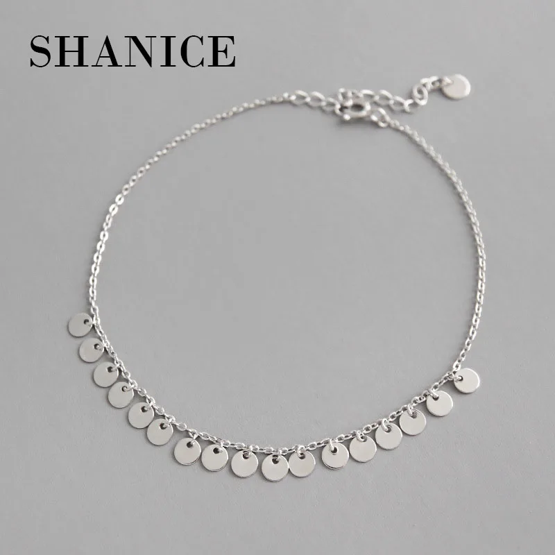 Шанис реальные 925 стерлингового серебра Браслет Модные круглые куски кулон пляжные ножные браслеты серебро Сандалеты с перепонкой на лодыжке, Женские Ювелирные изделия, подарок