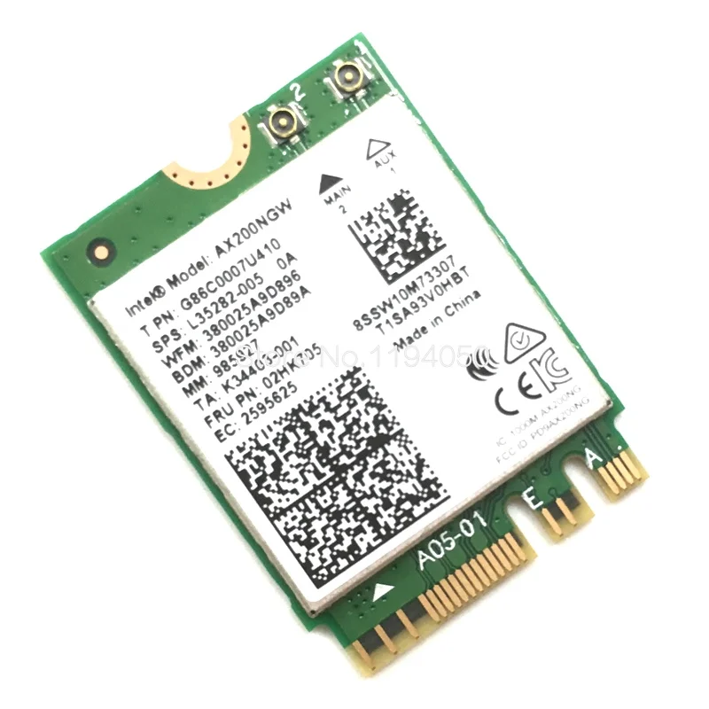 Описание продукта: Chipest бренд: Intel Модель: AX200NGW Двойной частоты: 2,4 ГГц/5 ГГц (160 МГц) Скорость до 1730 Мбит/с (маршрутизатор должен быть на 160 МГц); Скорость до 2400 Мбит/с (5 ГГц), 574 Мбит/с (2,4 ГГц) (маршрутизатор должен быть при температуре не выше 160 МГц, поддержка 802.11ax) Поддержка MU-MIMO с Bluetooth 5,0 Интерфейс: NGFF (M.2): 22*30 мм Поддерживаемые операционные системы: только для Microsoft Windows 10*64 бит, Примечание: Windows 7/8/8,1 не поддерживается Совместим: его можно использовать с Samsung / Dell / Sony / ACER / ISUS / MSI / Clevo / Terransforce / Hasee и т. д. (не включая lenovo и HP, если его можно использовать после перезаписи белого света). Ноутбуки IBM / Thinkpad / lenovo / hp не поддерживаются.