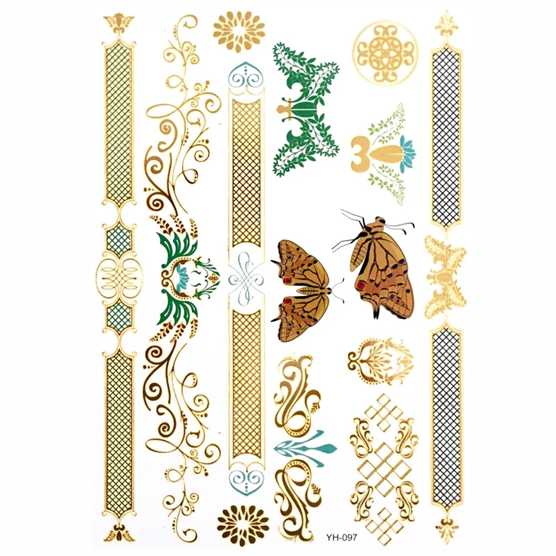 Горячая Распродажа, водостойкая металлическая временная татуировка, золотая, серебряная татуировка, Женская хна, бохо, цветочный дизайн, татуировка, наклейка