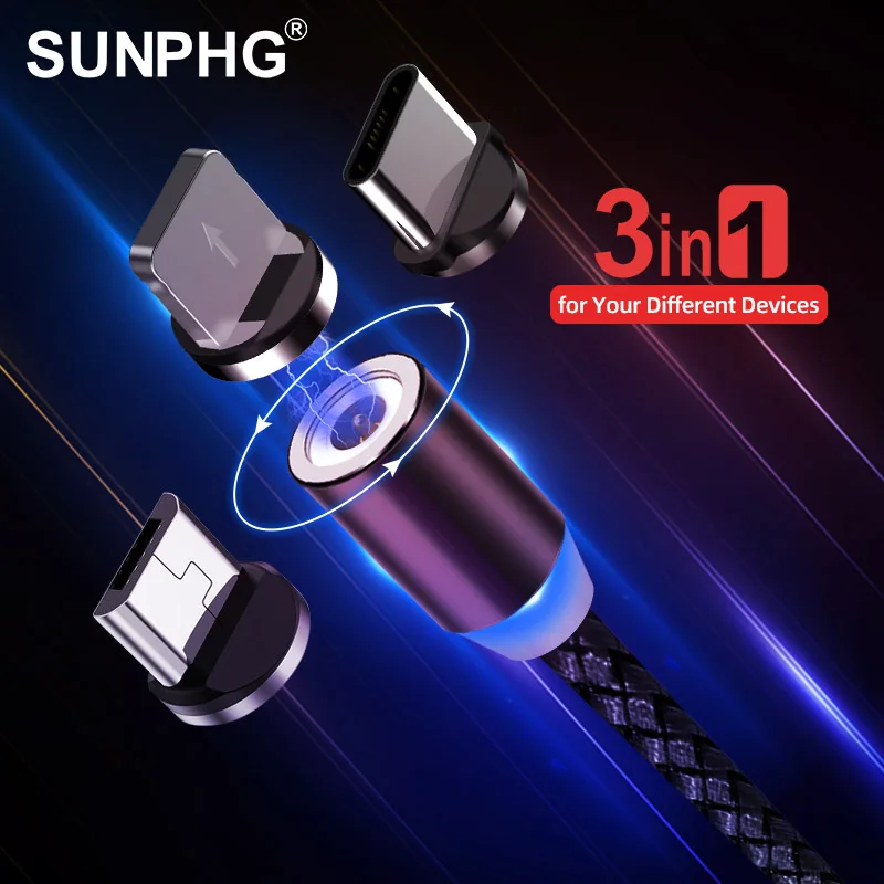 Круглый Магнитный зарядный кабель SUNPHG 3 в 1 Micro USB Type C, зарядный кабель для iPhone, Магнитный зарядный провод Lightning для телефона