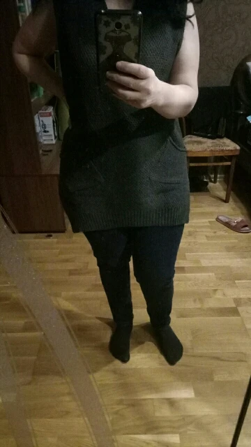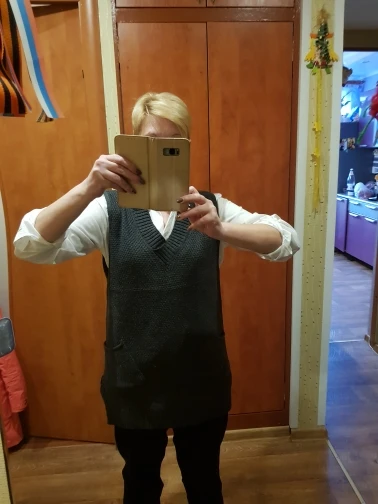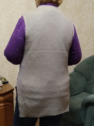 На фото жилет совсем другой по фактуре, плотной вязки. На самом деле он тонкий, просвечивает, тряпка тряпкой. Выбросила деньги.