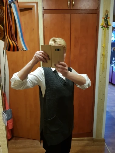 Жилет понравился, красивый винный цвет. На 46-48 размер подошёл, но на мой рост 166, длина немного короче, чем на фото. Не знаю, будет закатываться или нет. После носки будет видно. Сделан аккуратно, швы ровные. Спасибо за довольно быструю доставку