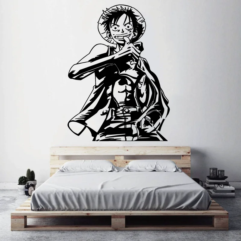 Цельные виниловые наклейки на стену Луффи из аниме и японского фильма с героями мультфильмов, для детской комнаты, для фанатов, украшение для спальни, стикеры в подарок