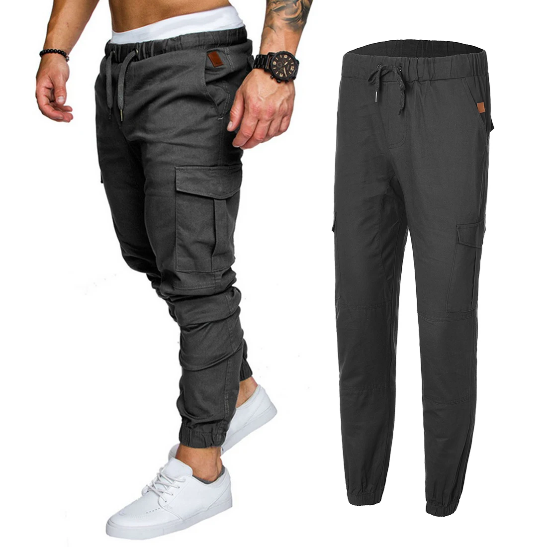Брюки мужские с несколькими карманами, спортивные штаны с эластичным поясом, повседневные однотонные джоггеры на бедрах, уличная одежда, осень