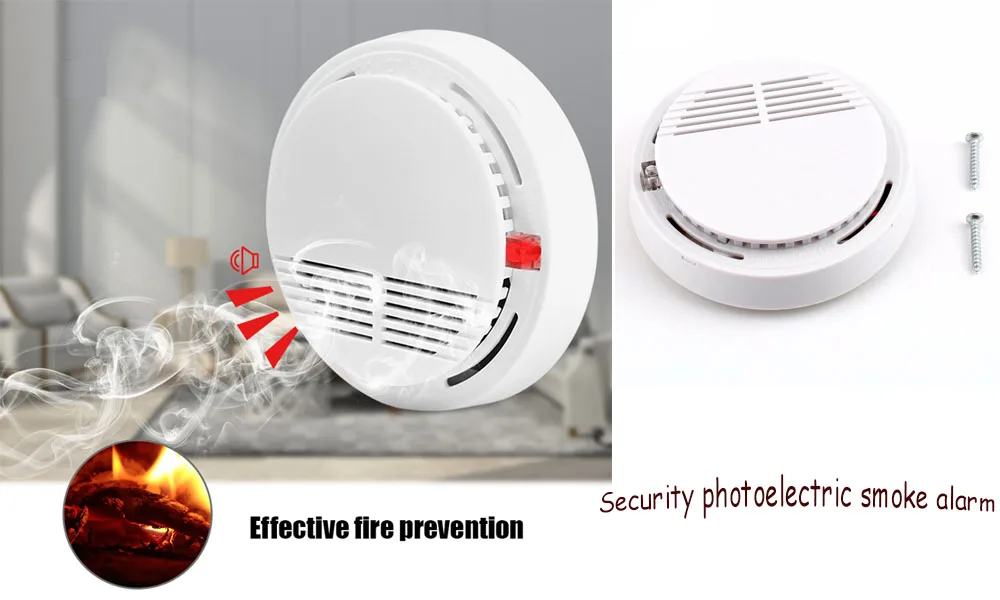 9V Батарея работает фотоэлектрический дымовой пожарной сигнализации светодиодный светильник мигает и звук Предупреждение дыма детектор сигналов тревоги для дома и школы отеля