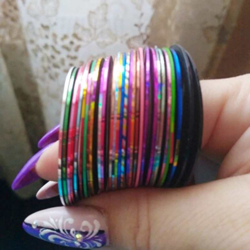 30 шт Смешанные красочные рулоны полоскания наклейки фольга советы лента линия DIY дизайн ногтей наклейки инструменты для украшения ногтей