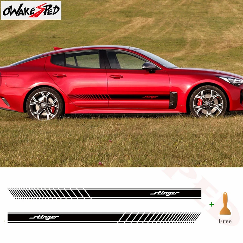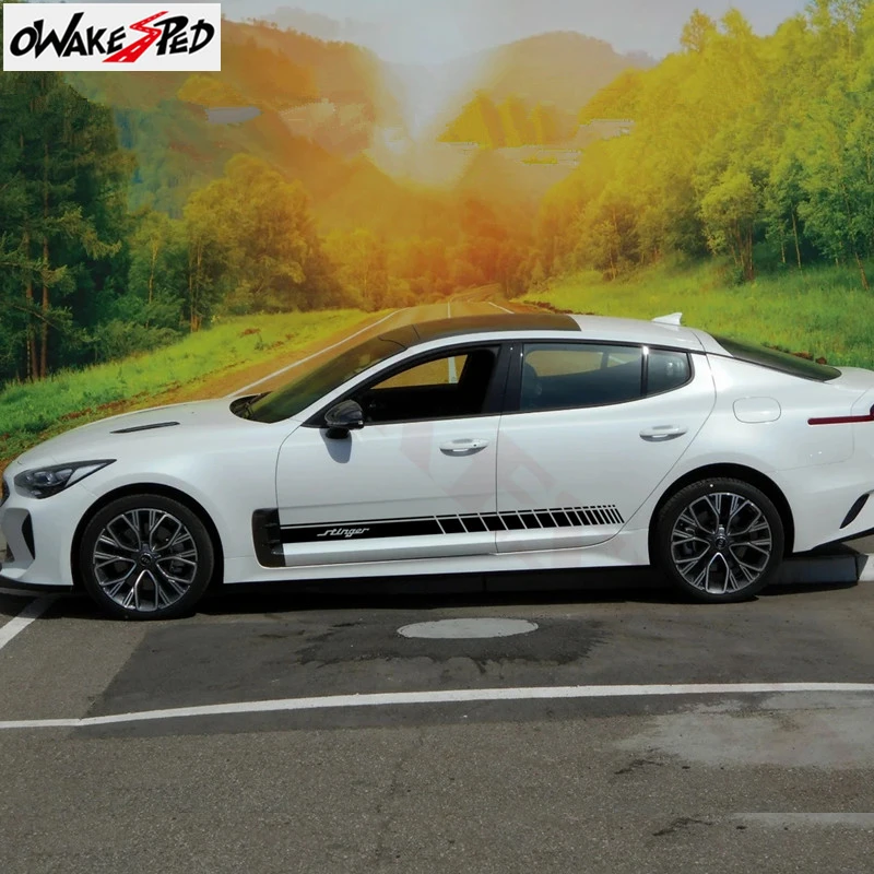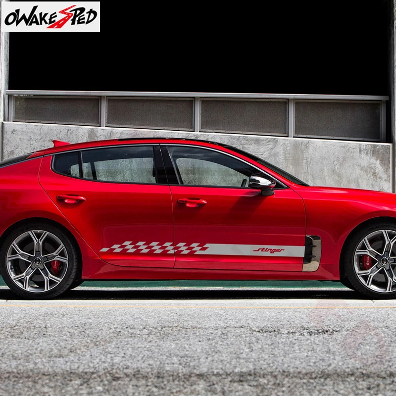 Гоночная сетка, графическая наклейка, автомобильные спортивные полосы, автомобильная дверь, боковая юбка, виниловые наклейки для KIA Stinger GT GTS