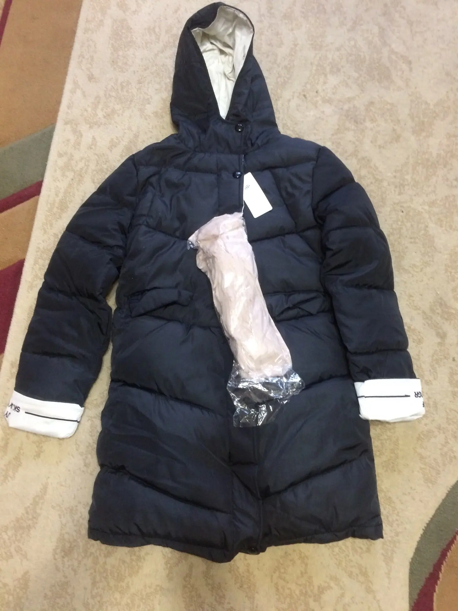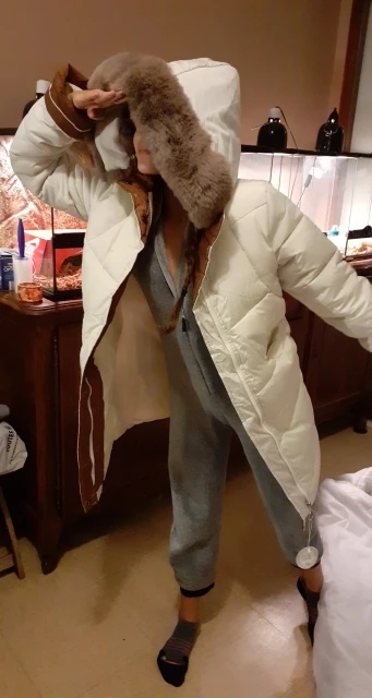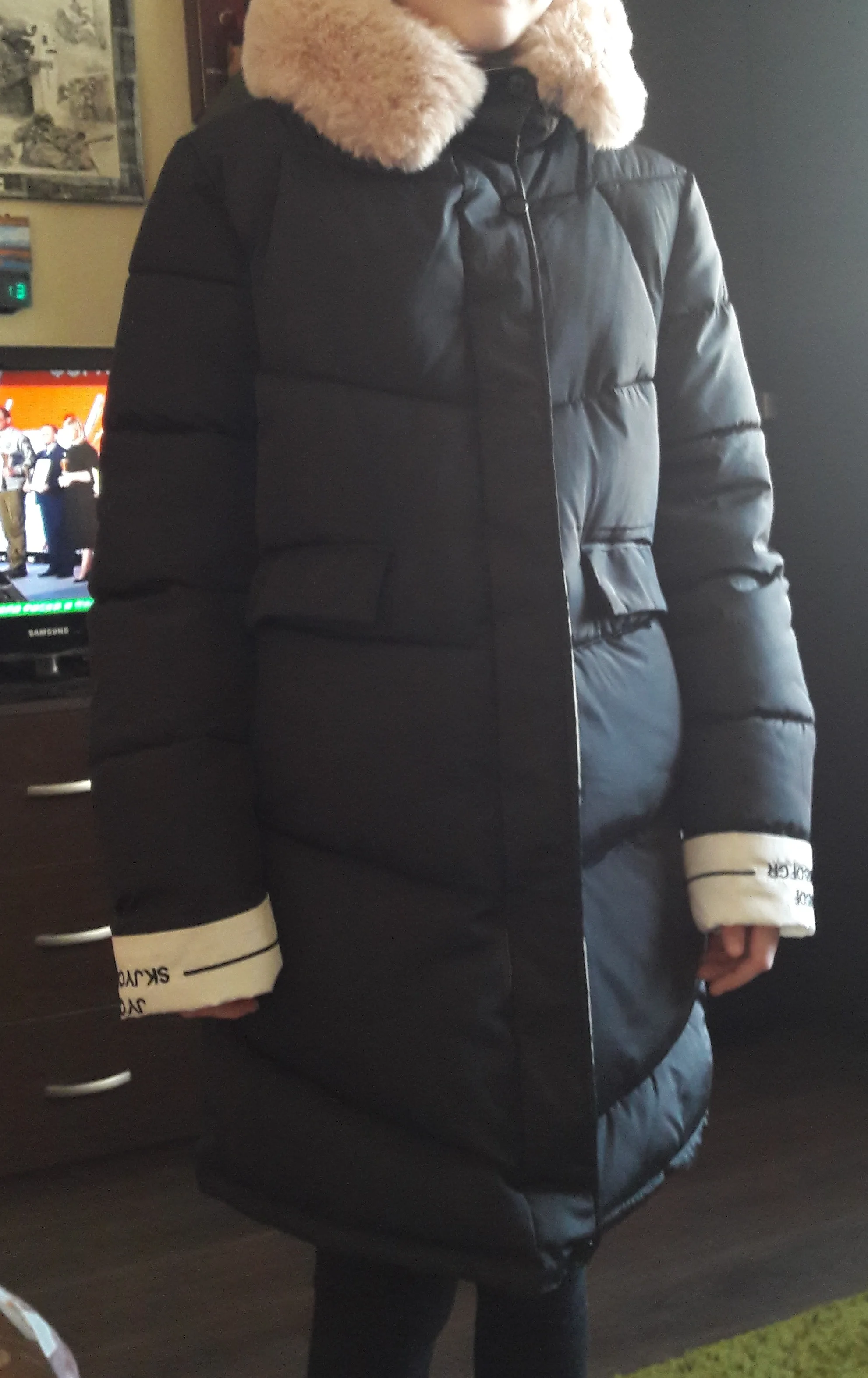 Пальто пришло за 1,5 месяца. В целом неплохое, посмотрим как в носке. На вид теплое, но на -20/25 может и холодно будет в нём. Вдоль молнии торчат нитки подкладки, опушка капюшона очень лезет. Сам капюшон очень мал, если не надевать, то нормально.
