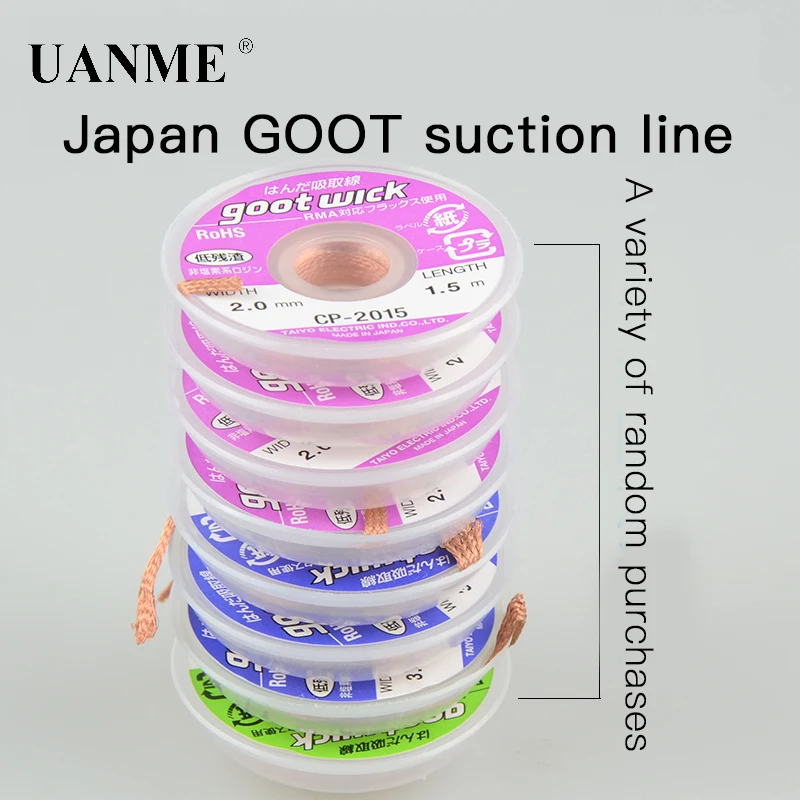 Фитиль для распайки UANME Japan GOOT RoHS MSDS, 1,5 м, удаление припоя для ремонта печатных плат, RMA, Прецизионная работа с флюсом без хлора