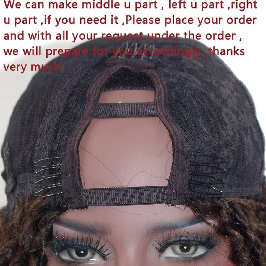100% натуральные вьющиеся волосы U-образной формы без клея, парики ...
