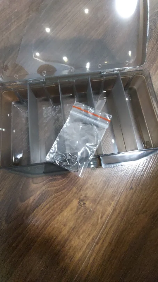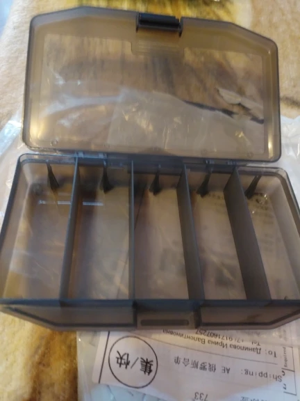 Получил сегодня рыболовную коробку большую 5 ячеек. Ккоробка очень понравилась,вместимая. Разместил все что хотел. Пластик эластичный, на морозе не должен полопаться.Продавец положил в подарок 5 крючков, огромное ему спасибо. Крючки пойдут для изготовления блесен на ротана.Еще раз спасибо продавцу. Все ОК.