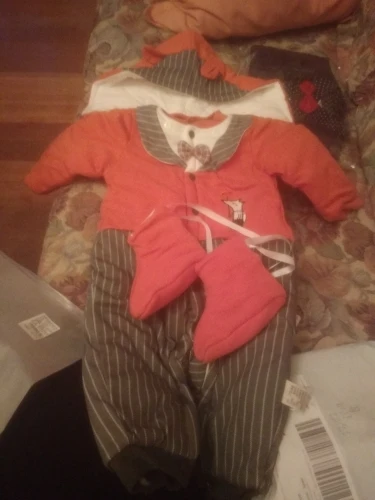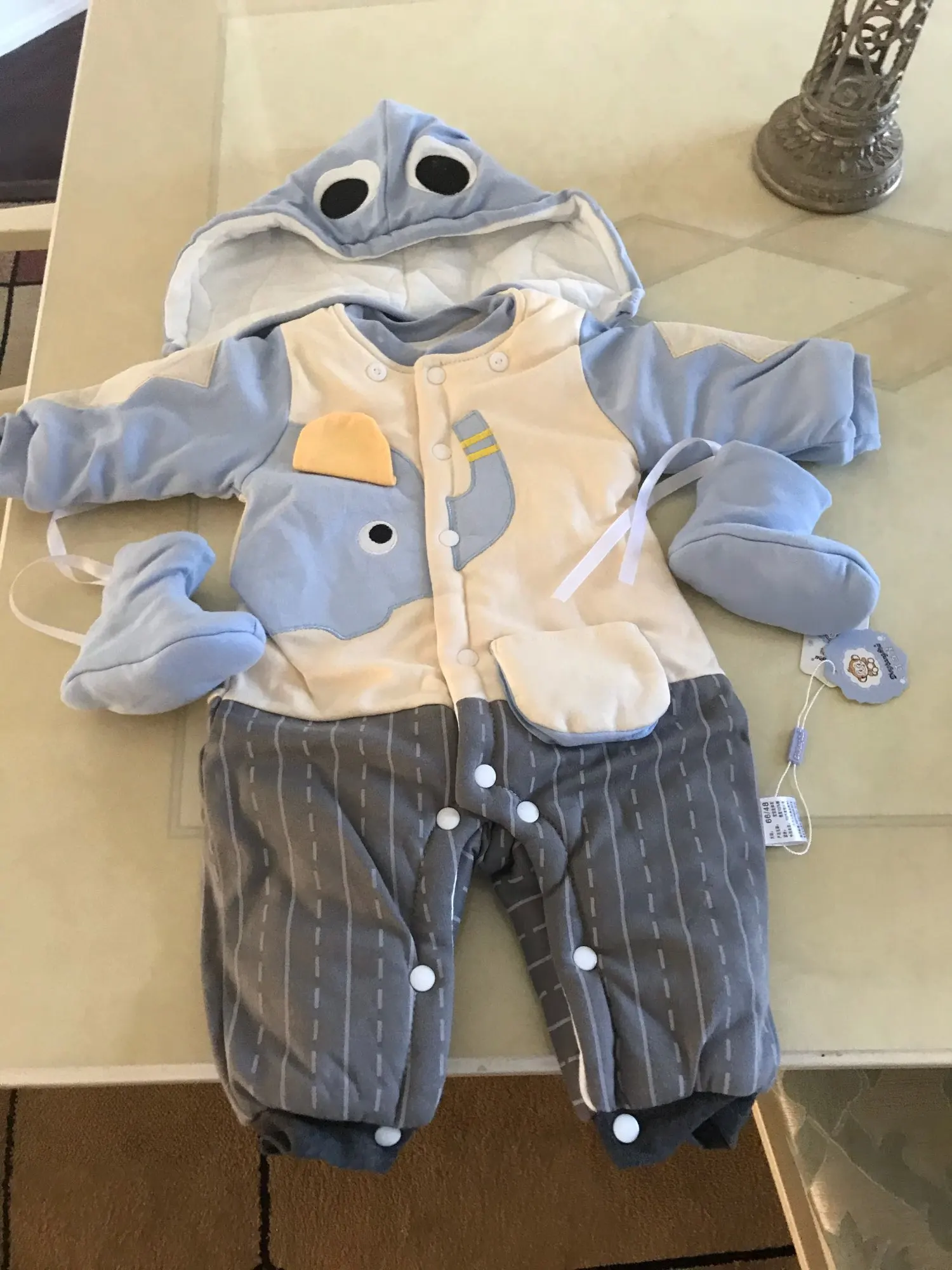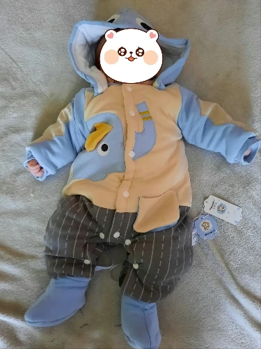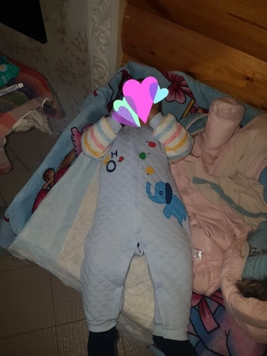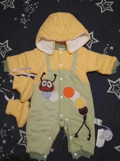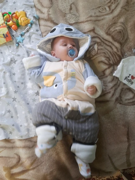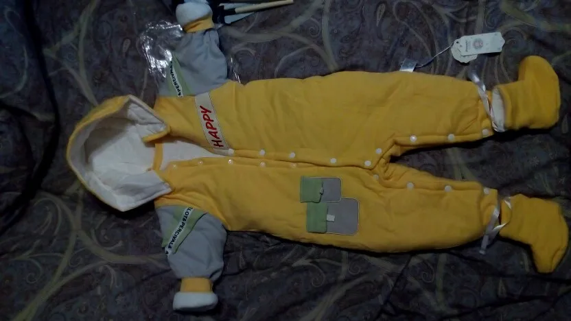 Хороший комбинезон, практически без запаха, нитки нигде не торчат. Тёплый, мягкий, кнопки прочные. Размер до 3ёх месяцев не больше. Доставка около месяца