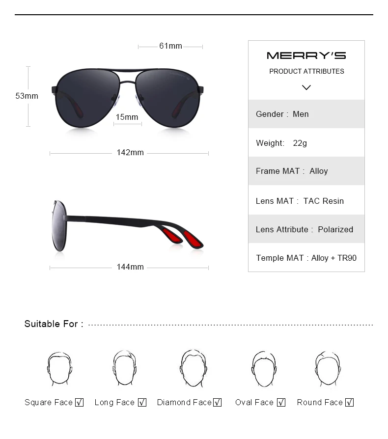 Мужские поляризованные солнцезащитные очки MERRYS, дизайнерские кла...