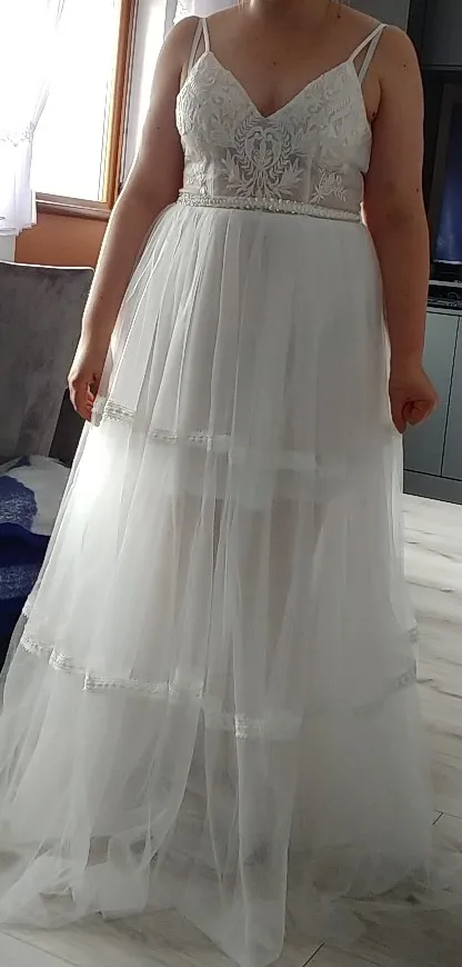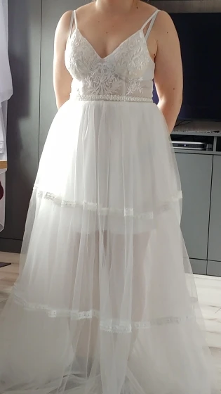 Платье Свадебное ТРАПЕЦИЕВИДНОЕ с открытыми плечами, тюль с перекре...