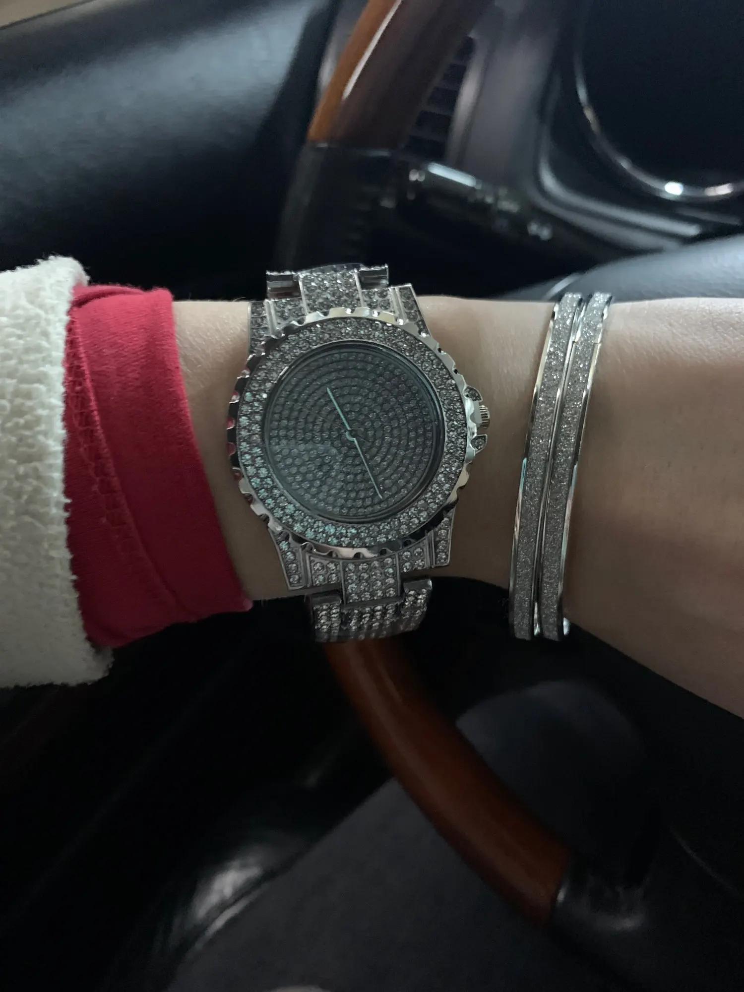 Часы женские кварцевые полностью стальные, наручные, с кристаллами