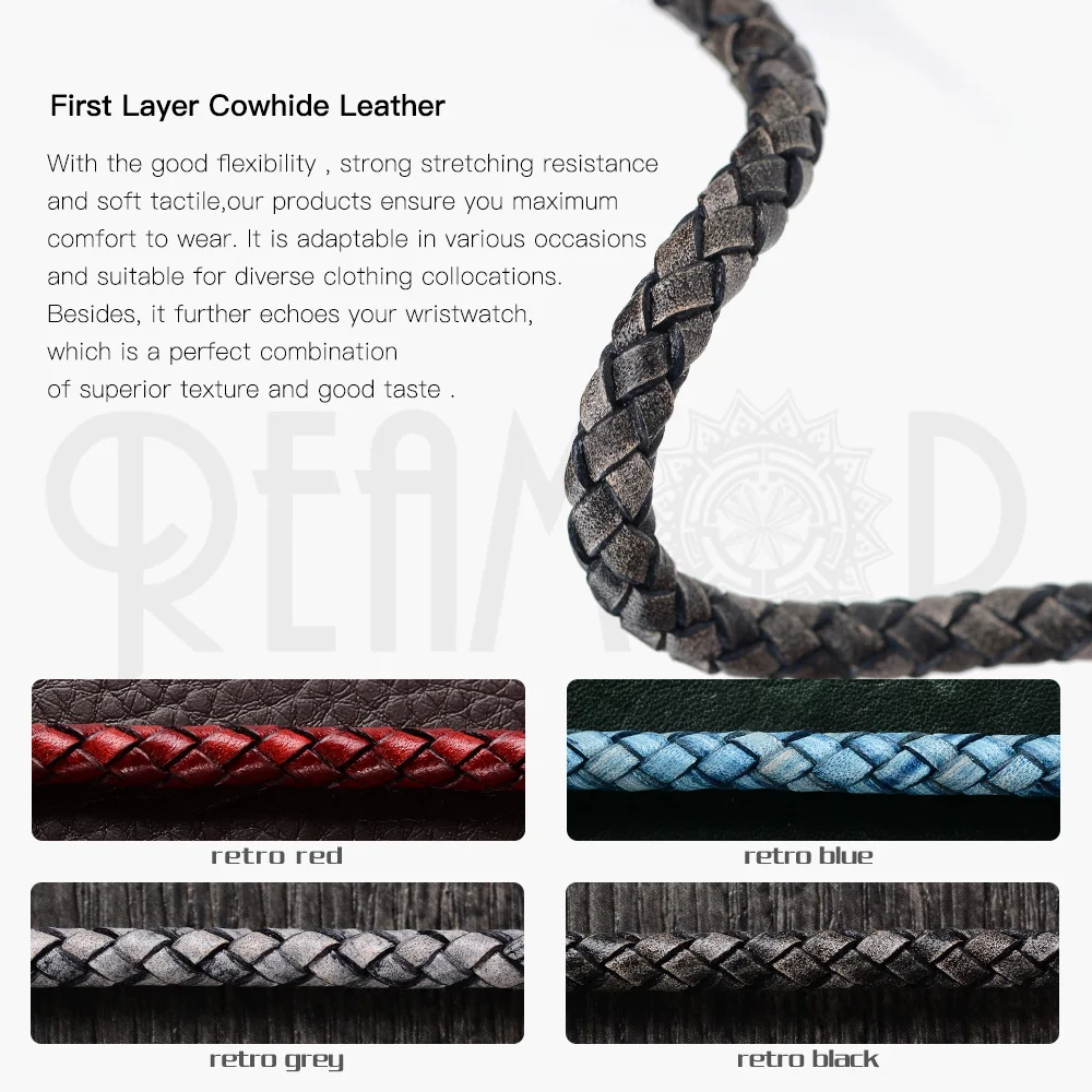 Мужской браслет из натуральной кожи REAMOR, серый плетеный браслет ...