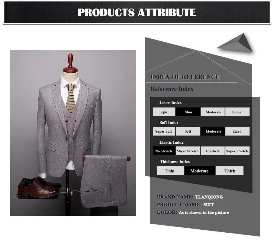 Мужской костюм из 3 предметов TIAN QIONG, деловой Повседневный кост...