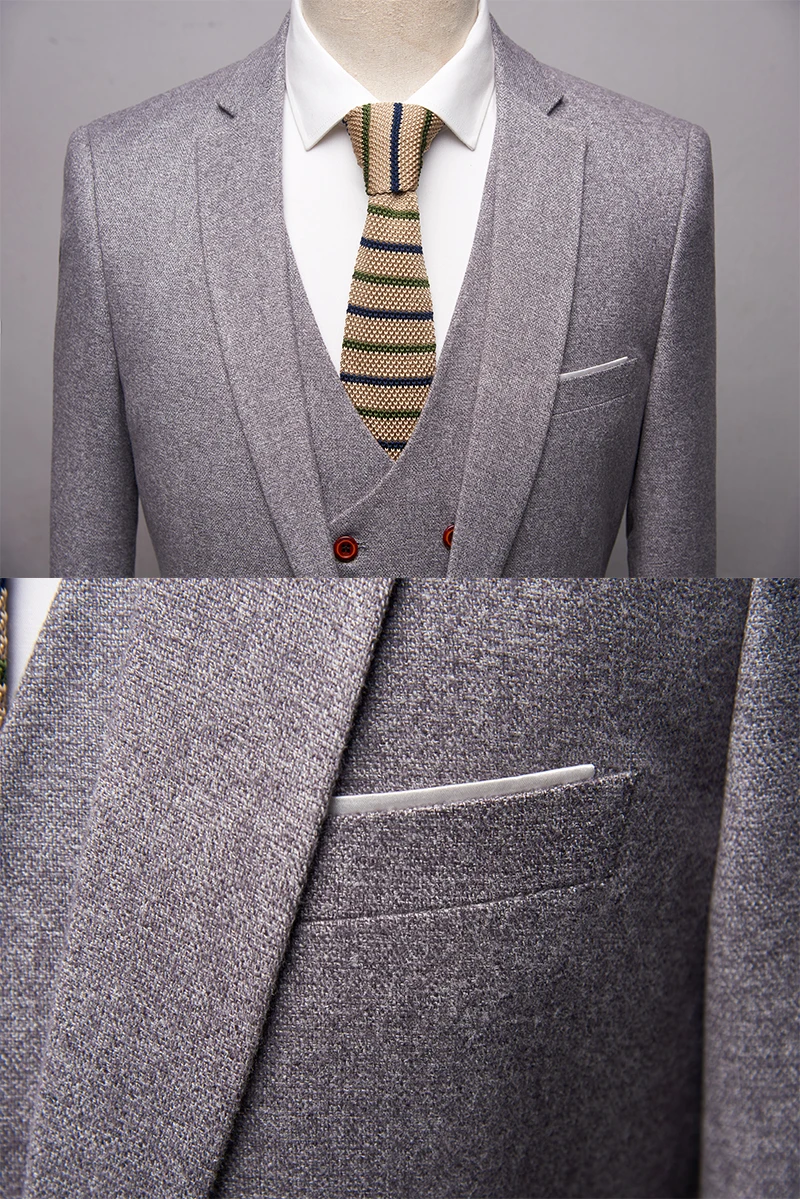 Мужской облегающий костюм из трех предметов, серый, черный, свадебный пиджак, брюки, жилет, 2019