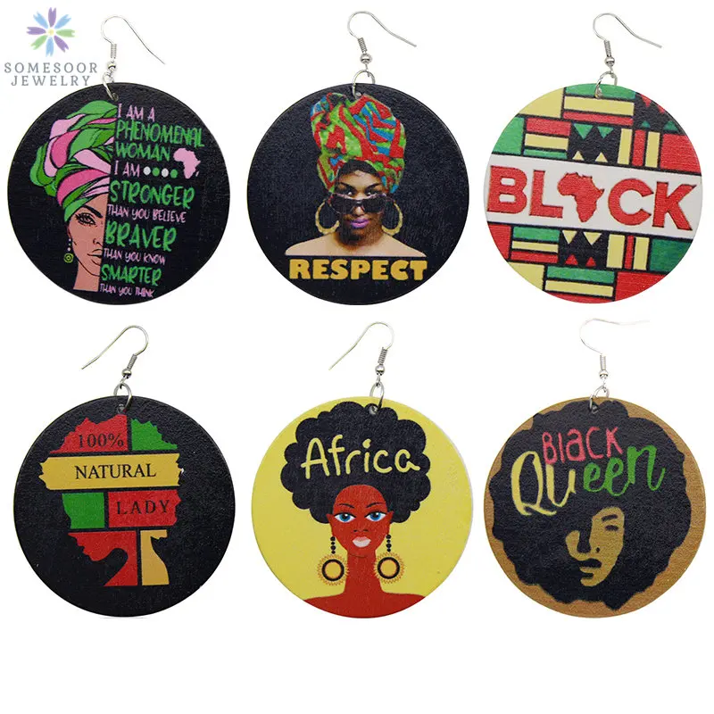 Серьги-подвески SOMESOOR из черной древесины, с принтом, африканская королева, настоящая леди, феноменальные женские вдохновляющие ювелирные изделия, 6 пар