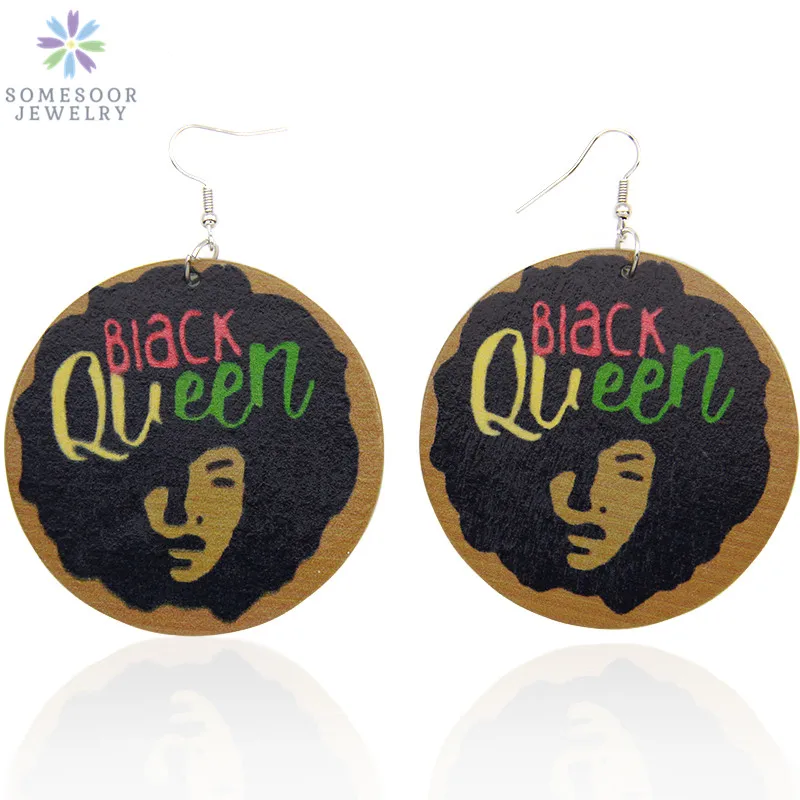 SOMESOOR меланин поппин королева вьющиеся деревянные висячие серьги...