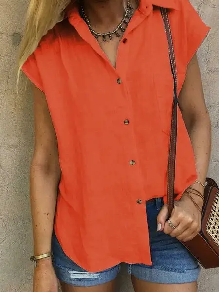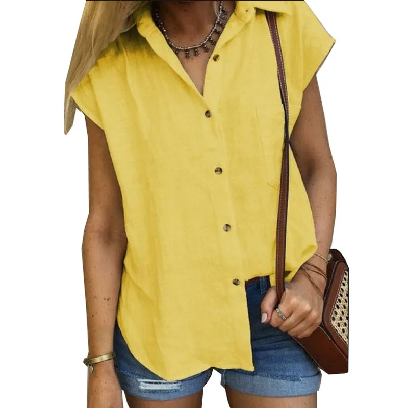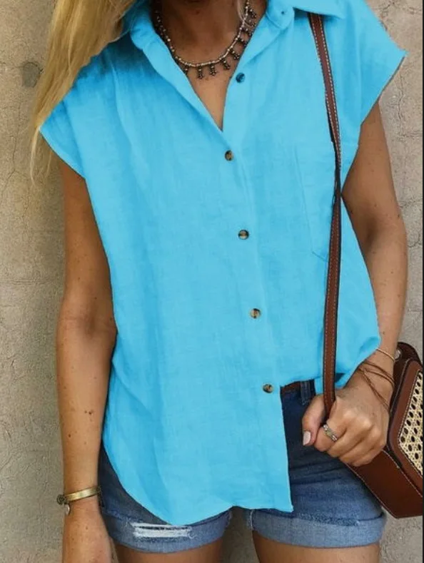 Блузка женская на пуговицах, рубашка из хлопка и льна с коротким рукавом, Офисная белая рубашка с лацканами, повседневный топ свободного покроя
