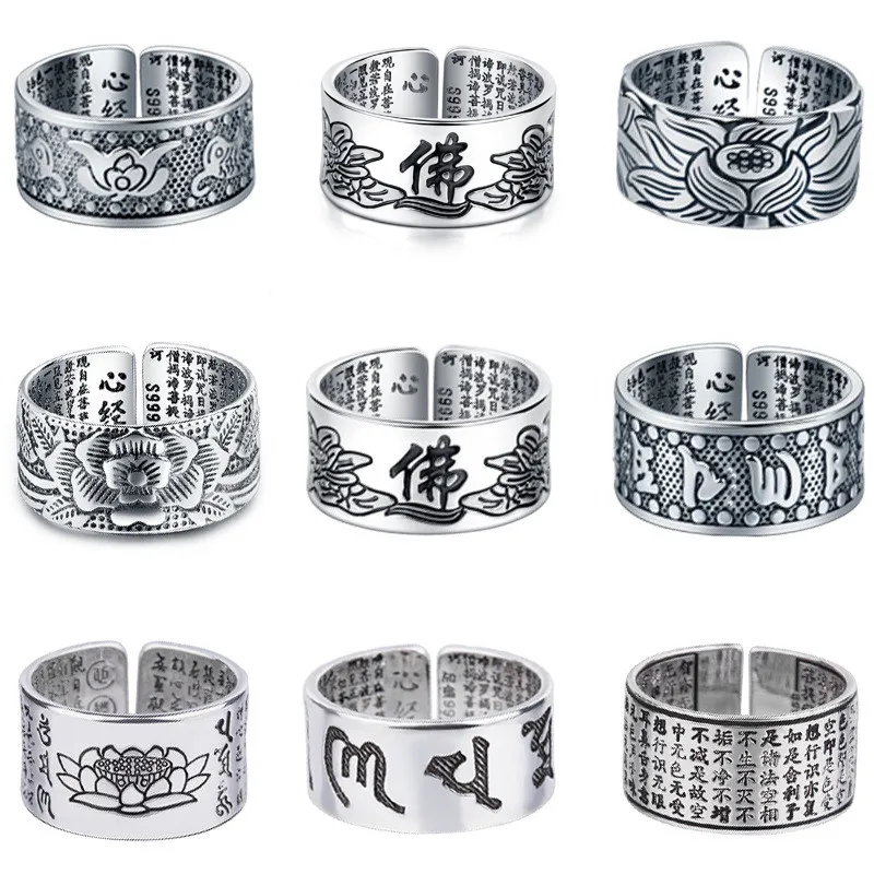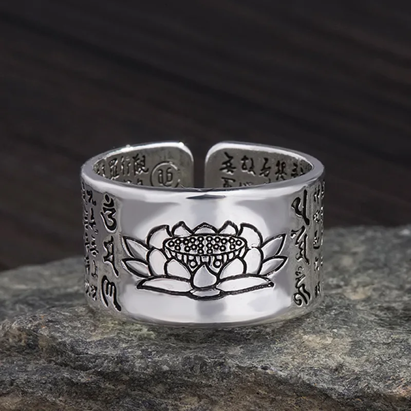 Винтажное медное кольцо для мужчин и женщин, мужское, на удачу, с надписью "Ом мани падме хум", лотос, санскрит, буддийское кольцо с мантрой