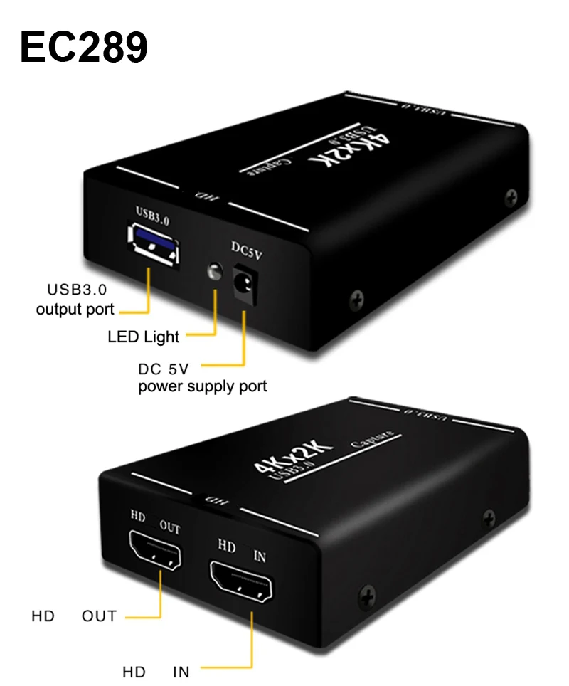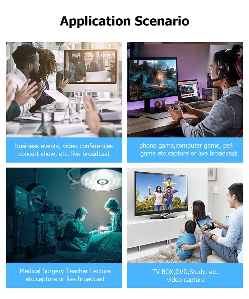 С этим USB 3,0 Full HD 4K x 2K видеозахват, вы можете захватывать или транслировать свой HD-игра или другой HD-видеоисточник с вечерние программным обеспечением, просто подключите его к своему ПК (windows, Mac, Linux). Не нужно устанавливать драйвер. Очень легко и удобно!