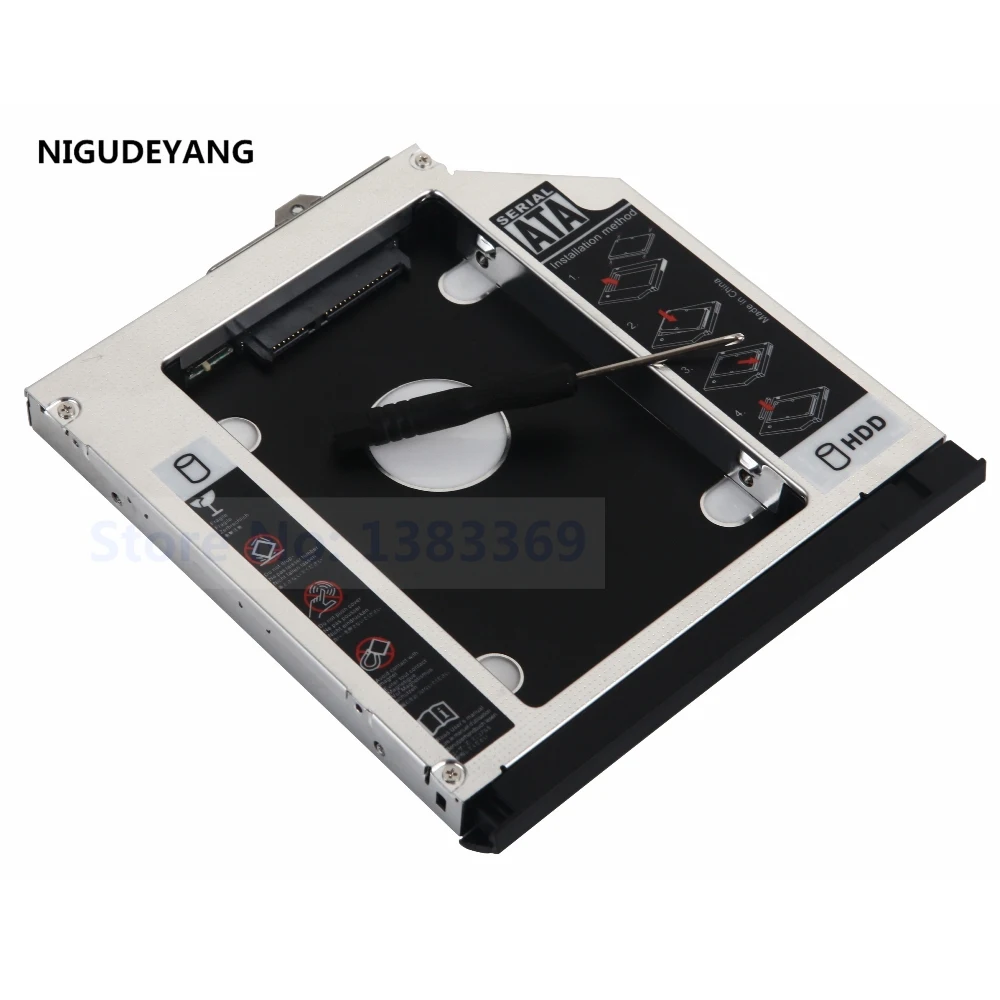 ВВинты со встроенным замкомПозволяют легко установить ваш второй жёсткий диск в caddy. Caddy построен изАлюминиевый корпусЧто делает его светильник крепким и обеспечивает охлаждение жесткого диска. TОн внутри caddy имеет пластиковый держатель, который поглощает шум и вибрации со 2-го жесткого диска/SSD.