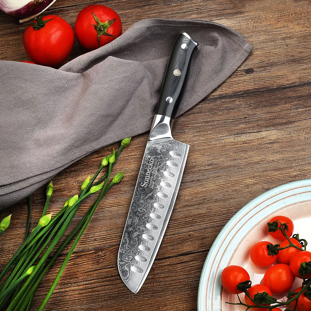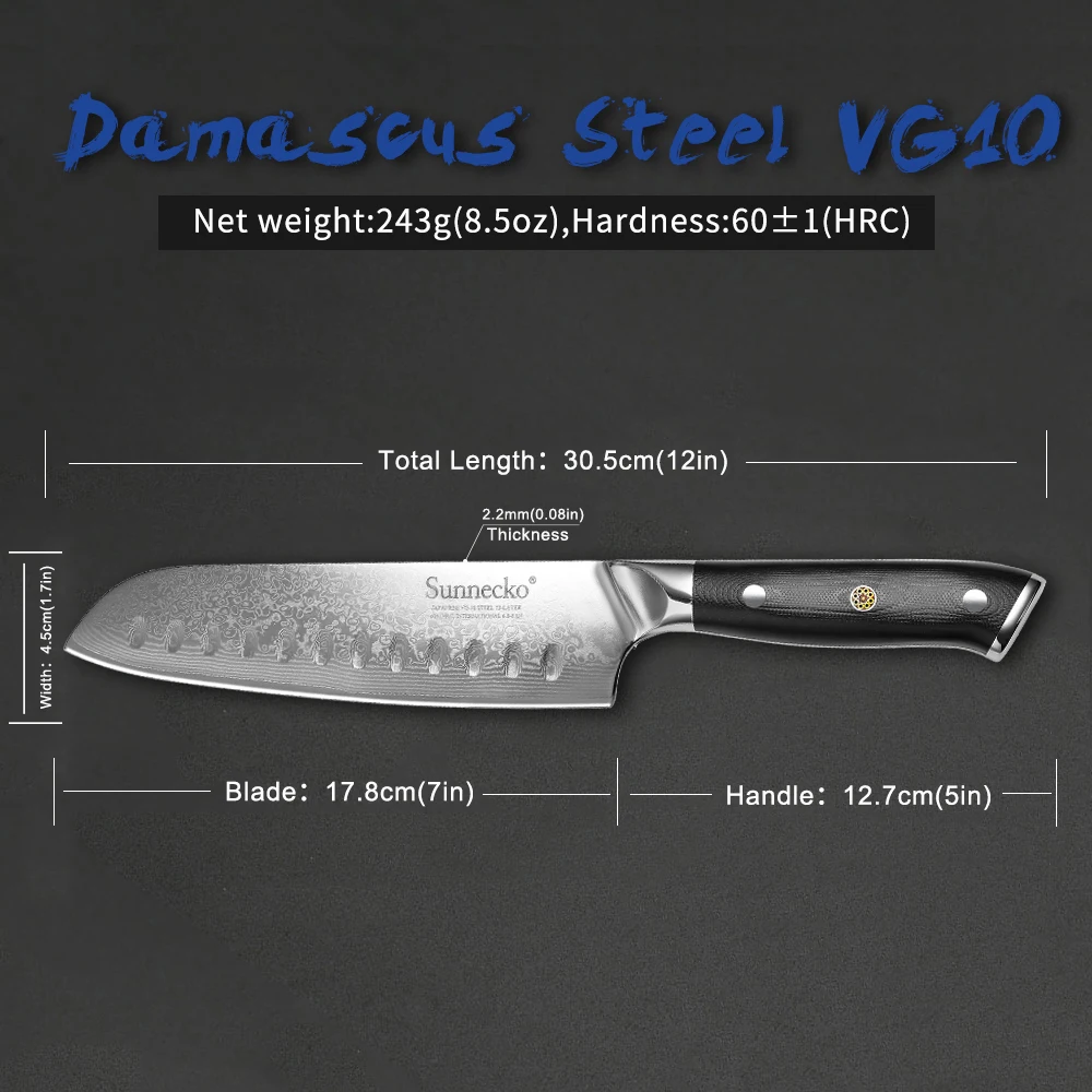Нож сантоку SUNNECKO VG10, японские кухонные инструменты, лезвие из дамасской стали, 7 дюймов, Ручка G10