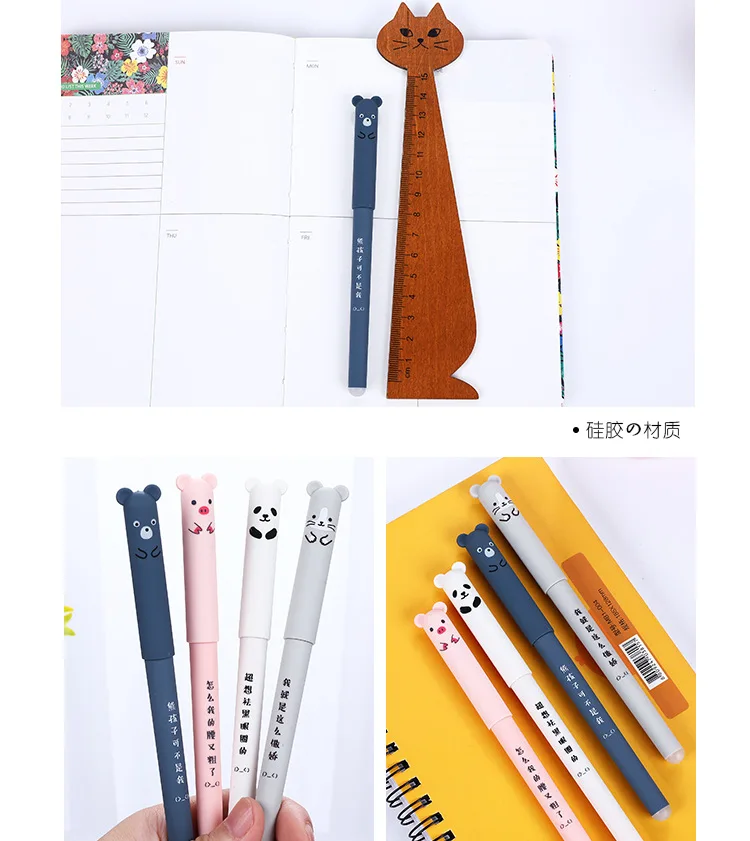 Гелевая ручка, 4 шт.лот, Kawaii, панда, розовая мышь, панда, стираемые синие и черные чернила, школьные и офисные принадлежности, подарок, канцелярские принадлежности