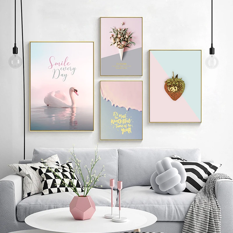 Настенная Картина на холсте с изображением розового лебедя, розы, пейзажа, скандинавские плакаты и принты, декоративные картины для украшения гостиной