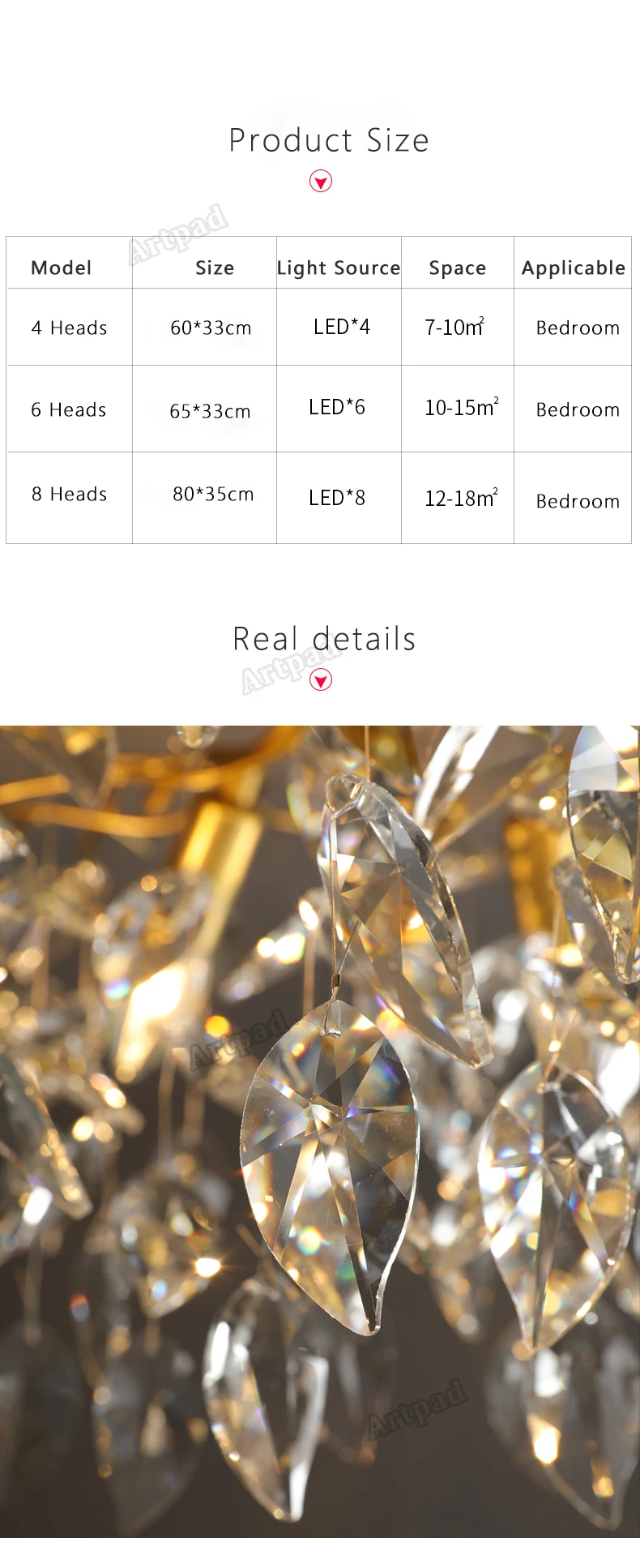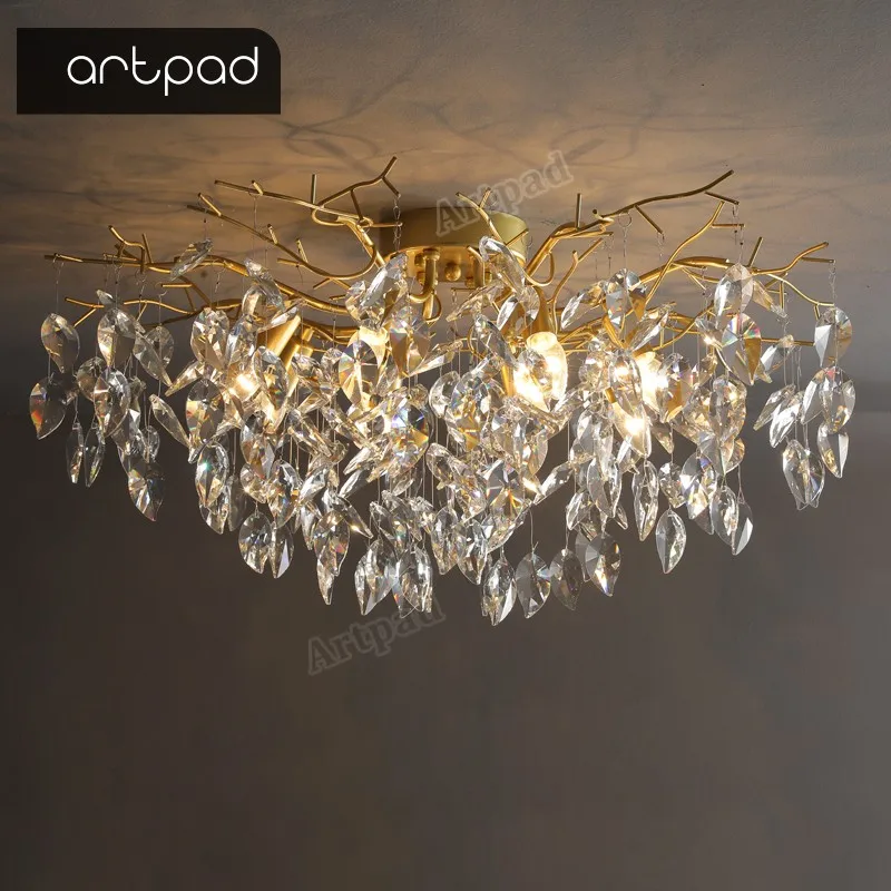 Artpad винтажная Хрустальная потолочная Светодиодная лампа для гостиной, столовой, спальни, декоративная люстра, промышленная подвеска