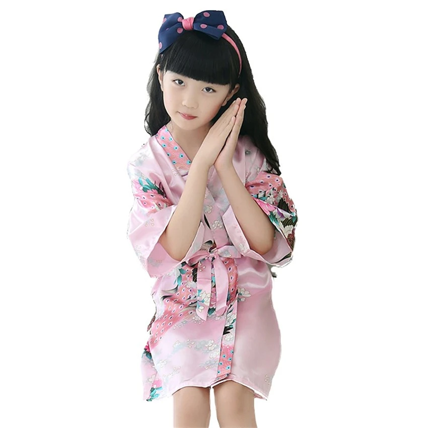 Искусственная кожа, Традиционная японская модель для девочек, свадебная одежда для сна подружки невесты, модель павлина, Детская шелковая азиатская одежда для сна