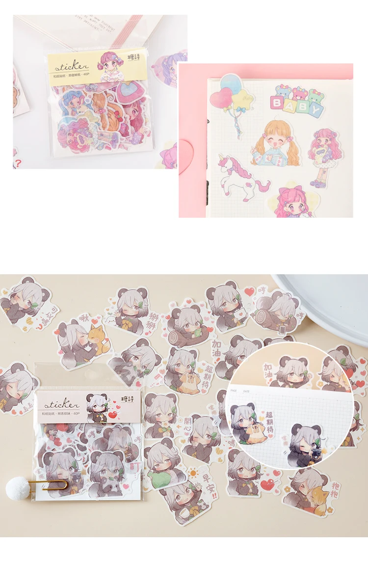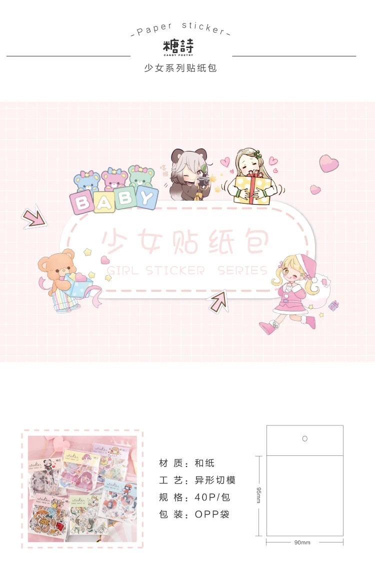 40 шт.лот милый набор стикеров Васи Kawaii Кот мультфильм девушка декоративные наклейки Diy этикетка для скрапбукинга планировщик альбом журнал