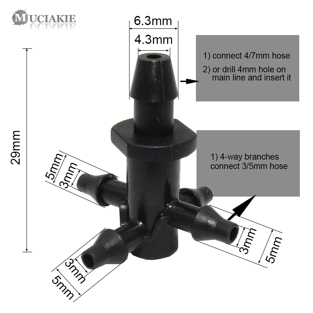 MUCIAKIE 50 шт. капельный оросительный крестообразный соединитель для сада 5 способов распределения воды 47 мм до 4 веток 35 мм шланг капельный адаптер для воды