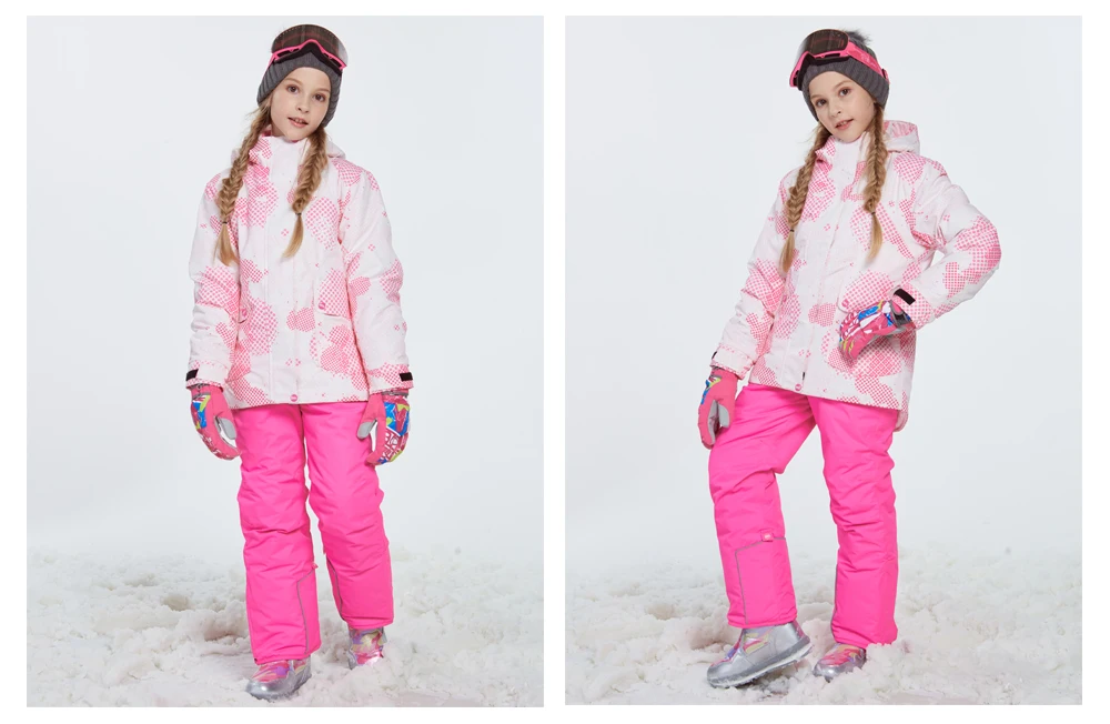 Детский Зимний лыжный костюм для девочек, ветрозащитная Лыжная куртка и штаны, комплект верхней одежды для детей, теплый лыжный костюм с капюшоном для девочек-подростков