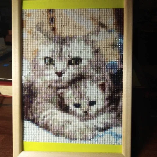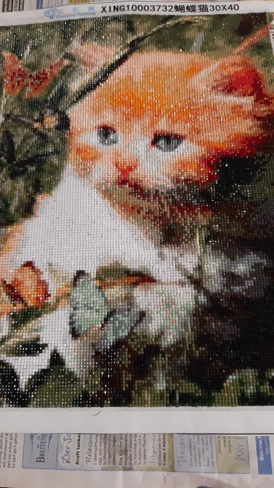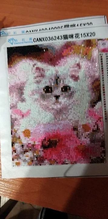 30x40 см большой. Кошка в джунглях 30 или 33 цвета квадратных дрелей. 3 картины с бриллиантами не были в бумажной коробке. 2 DP's 30x40 1 DP 45X60 1 30X40 DP имеет 30 цветов, остальные 33 цвета. Упаковка была открыта во время транспортировки.