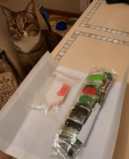 Доставка быстрая, только пакетики со стразами порвались,пришлось сидеть их разбирать по цветам.Нужно лучше упаковывать!!!