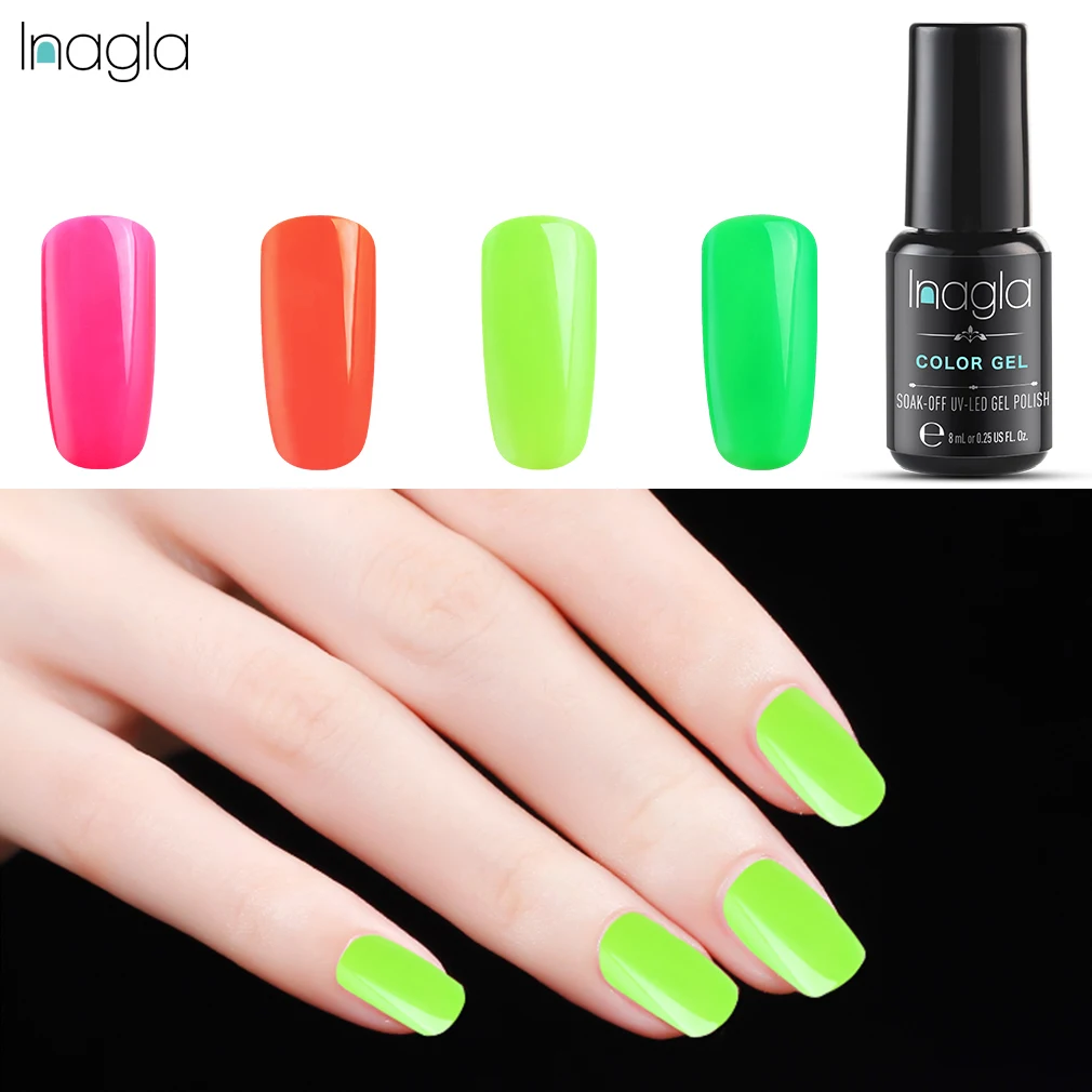 Inagla 8 мл флуоресцентный цветной лак для ногтей УФ светодиодный отмачиваемый лак для ногтей Полупостоянный неоновый гель лак Lucky Hybrid лак для нейл-арта