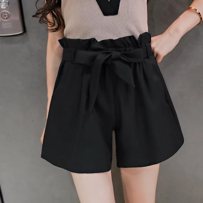 Шорты женские, повседневные, с поясом, однотонные, свободные, универсальные, в Корейском стиле