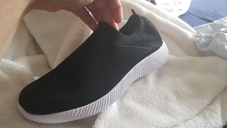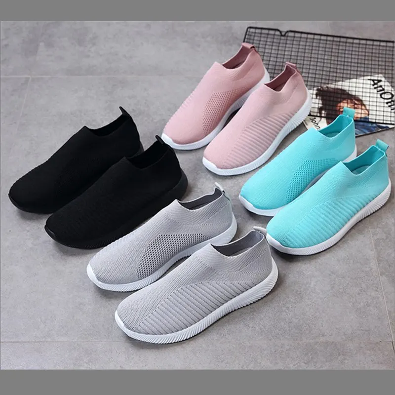 Женские кроссовки без шнуровки, летние дышащие сетчатые кроссовки на плоской подошве, спортивные кроссовки черного цвета для фитнеса, размера плюс